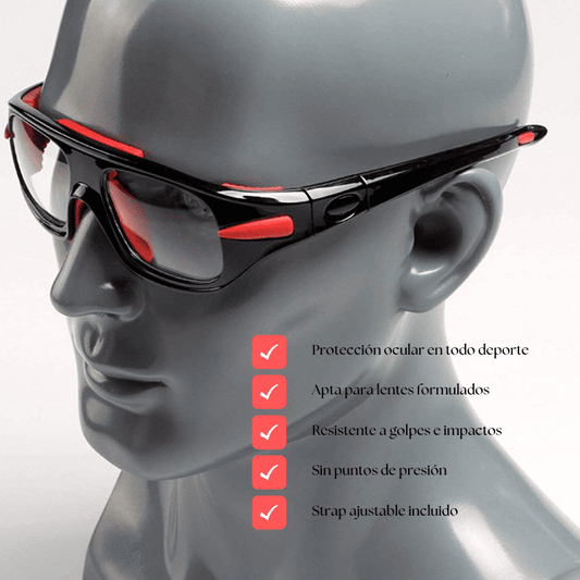 Gafas Protección Deportivas Para Lentes Formulados – Negro/Rojo